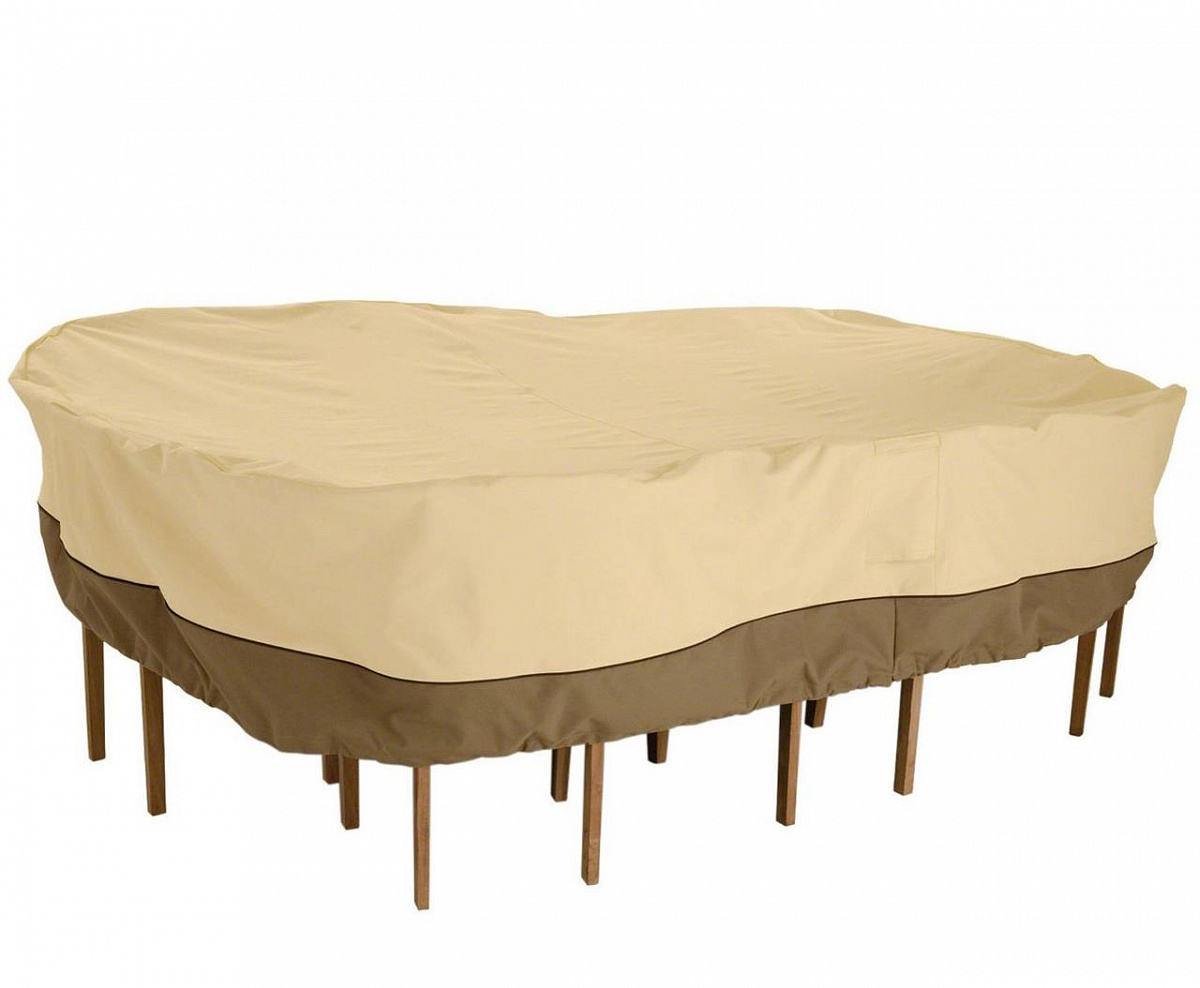 Чехол для стола со стульями изготавливается из прочной, износостойкой ткани устойчивостью к влаге, ультрафиолетовому излучению, истиранию, разрывам. Функциональный аксессуар предотвратит порчу предметов меблировки, сохранит эстетичность на длительное время.