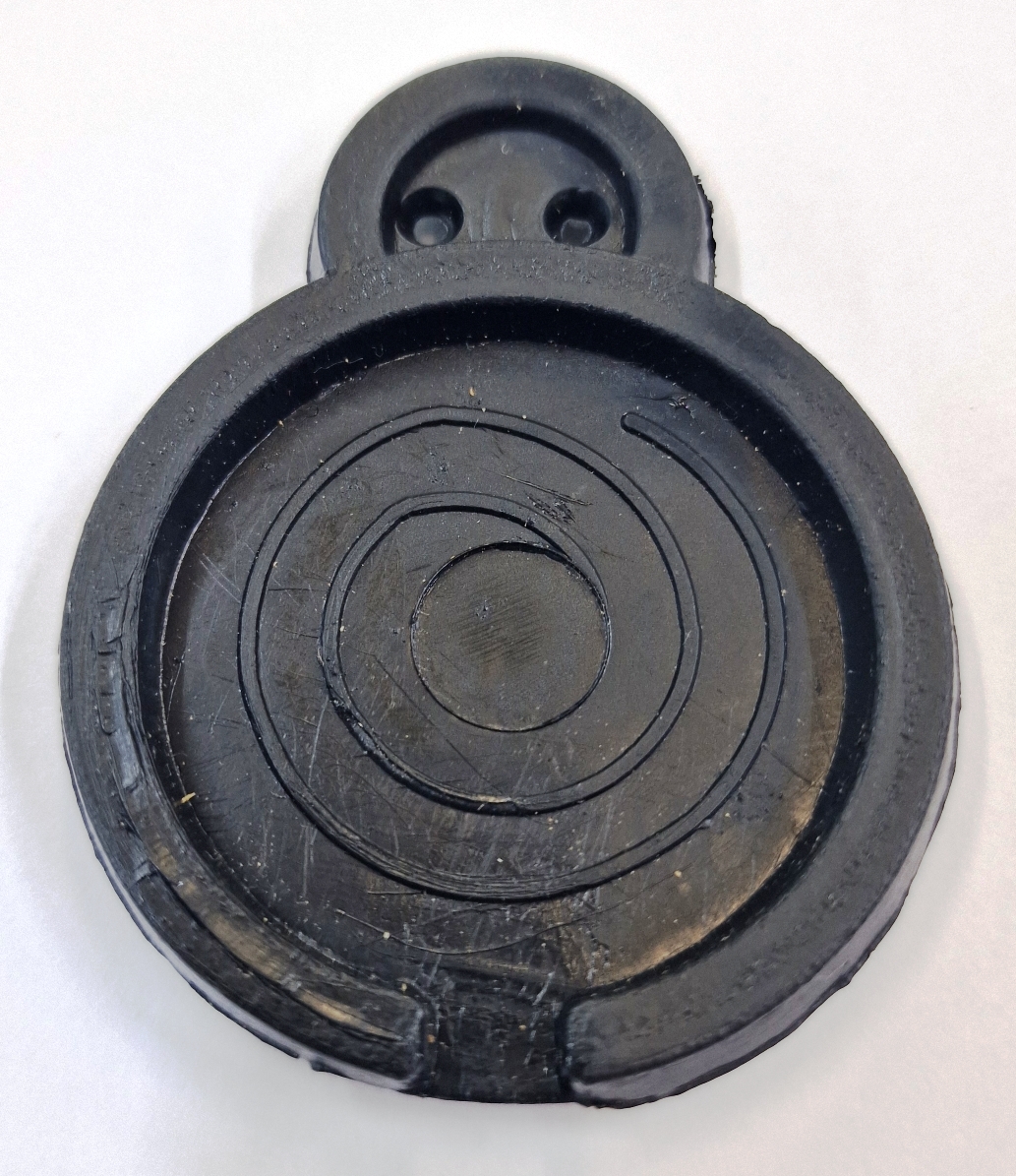 Пластиковая однопечатная плашка диаметром 40 мм. Элементарность конструкции (плашка не имеет составных деталей) и дешевизна материала (пластик) делает данное устройство наиболее подходящим для решения задач, когда опечатывать нужно множество объектов, то есть требуется большая оптовая закупка. Во всяком случае, в плане экономии это лучший вариант. Устройство подвесное - шнурок пропускается через проушины опечатываемого объекта и два отверстия плашки. Поверх петли шнурка в углубление плашки заливается сургуч или иной пластичный материал, и проставляется оттиск металлической печатью. Любые манипуляции со шнурком приведут к разрушению пластичного материала. Так обеспечивается мониторинг незаконного проникновения к обьекту.