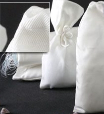 Вы можете выбрать один из дизайнов мешочков, представленных у нас на сайте, либо же разработать свой. Наши дизайнеры с радостью подберут для вас дизайн мешочка. В стандартном варианте мешочек поставляется с завязками в цвет изделия. Ткань выглядит довольно необычно, у неё интересное плетение.
