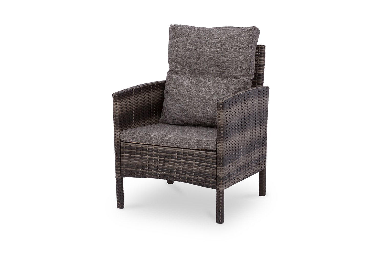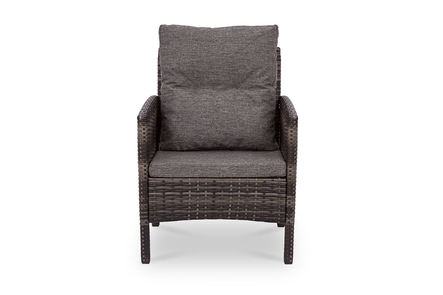 Кресло Фарелл станет отличным дополнением для других комплектов мебели коллекции Фарелл. Вся коллекция предназначены для использования мебели на улице. Мебель может быть установлена на улице прямо под открытым небом, и все благодаря материалам, из которого она состоит. В состав кресла входит металлический черный каркас, оплетенный искусственным ротангом серо-коричневого цвета. Искусственный ротанг – синтетическое волокно, которое не портиться под влиянием дождя, солнца, ветра и пыли. Его легко чистить – достаточно полить водой из шланга. Максимальная нагрузка на кресло 100 кг.