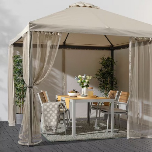 - В комплекте также поставляются завязки и подхваты, чтобы подвязать шторку к столбам беседки.