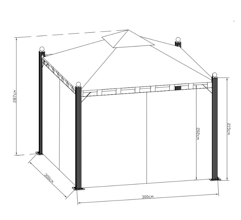 В данном товаре тент-крыша+шторы. Размеры беседки (ДхШхВ), в сантиметрах 300x300x287