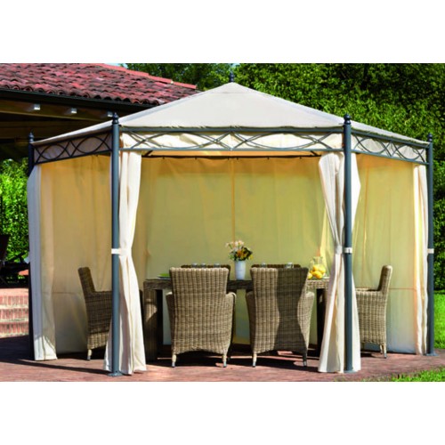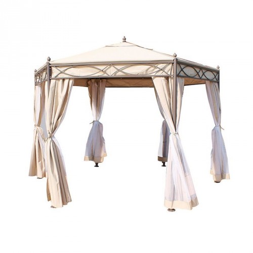 Крыша для шестиугольной беседки 1,75х1,75м оснащена вентилируемым клапаном, который пришит по углам к основной части изделия.