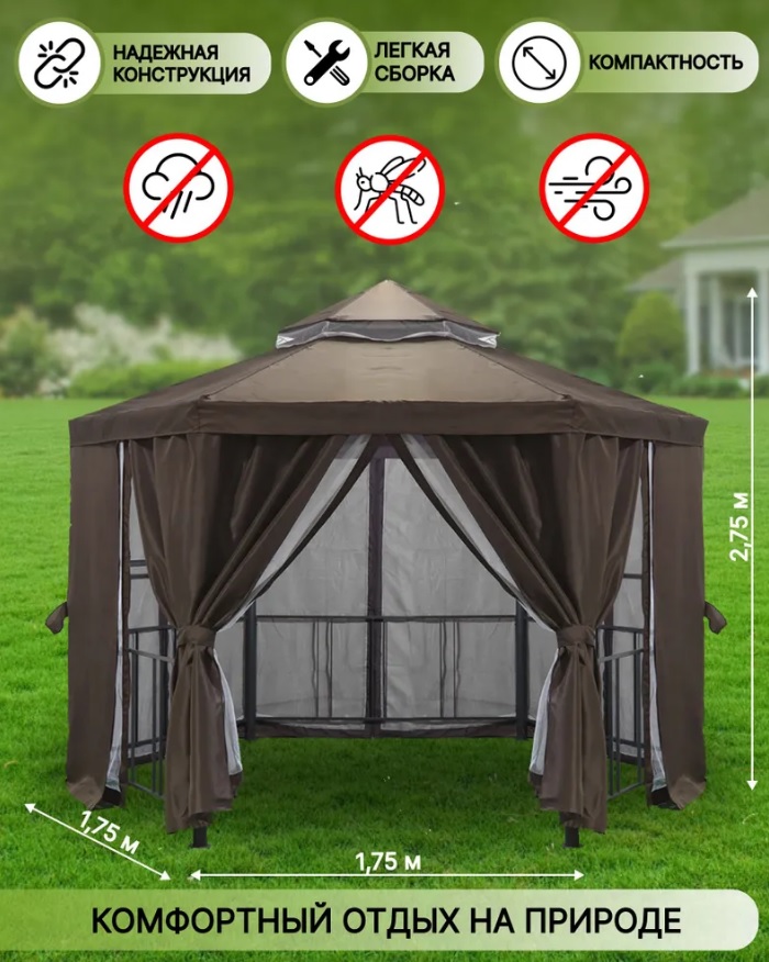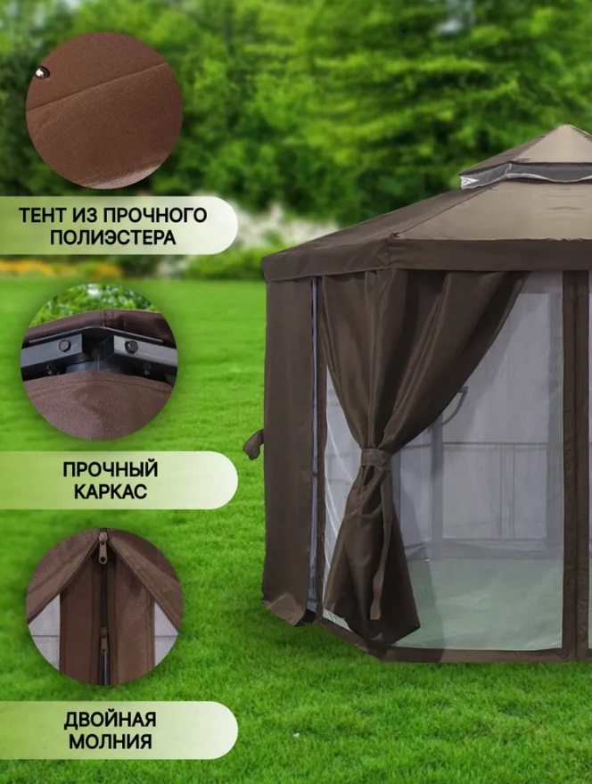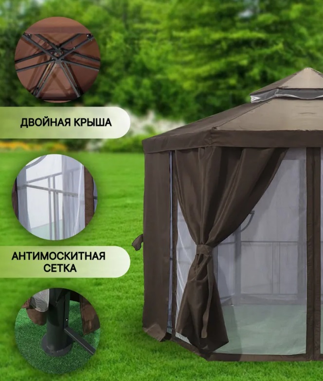 Купить Комплект для шатра ГЕКСАГОН: тент-крыша + антимоскитные сетки цена 16000 руб. в Москве и СПб с доставкой по России