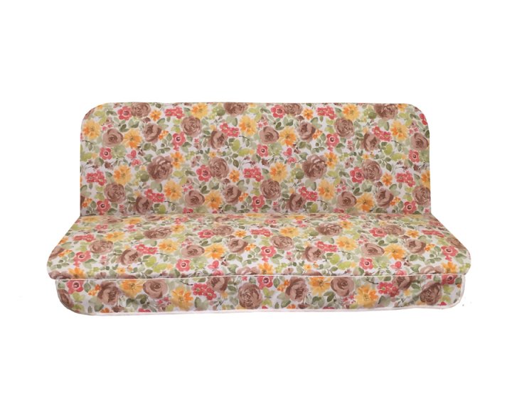 Предназначен данный комплект для длины сидения 150 см. Внешняя часть изготовлена из смешанной ткани, произведённой в Испании, данные ткань на 70% состоит из хлопка, а также на 30% из полиэстра. Благодаря тому, что в данной ткани большое количество натуральных волокон, она с лёгкостью пропускает воздух, а также является очень приятной на ощупь. Такая ткань устойчива к появлению пятен, отлично разглаживается. Обратная часть изготовлена из стопроцентного полиэстера. Она является очень прочной и износостойкой, она устойчивая, а также является неприхотливой в уходе. Наполнен матрас при помощи пенополиуретана высокой плотности, его толщина составляет 5 см, также есть слой, который делает изделие мягким.