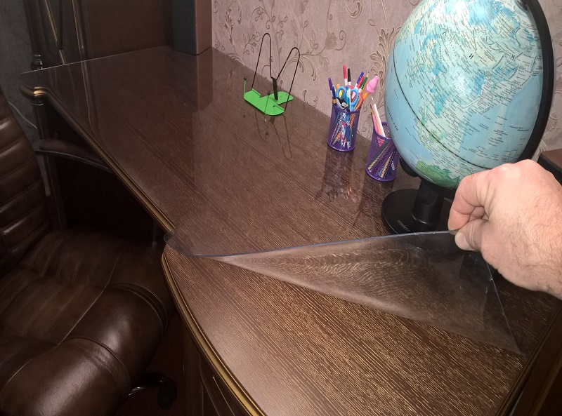 Прозрачная силиконовая пленка из ПВХ — это очень надежный материал, который способен выдерживать большие нагрузки. Такая накладка может выдержать очень сильный нагрев, до +60 градусов. Однако, если вы используете такую накладку на кухне, то помните, что нельзя на ее ставить кастрюли и сковородки, которые вы только что сняли с огня, или горячей плиты. Зато данная накладка вполне выдержит горячие кружки, тарелки с только что приготовленной едой. Следы от посуды на ней не остаются.