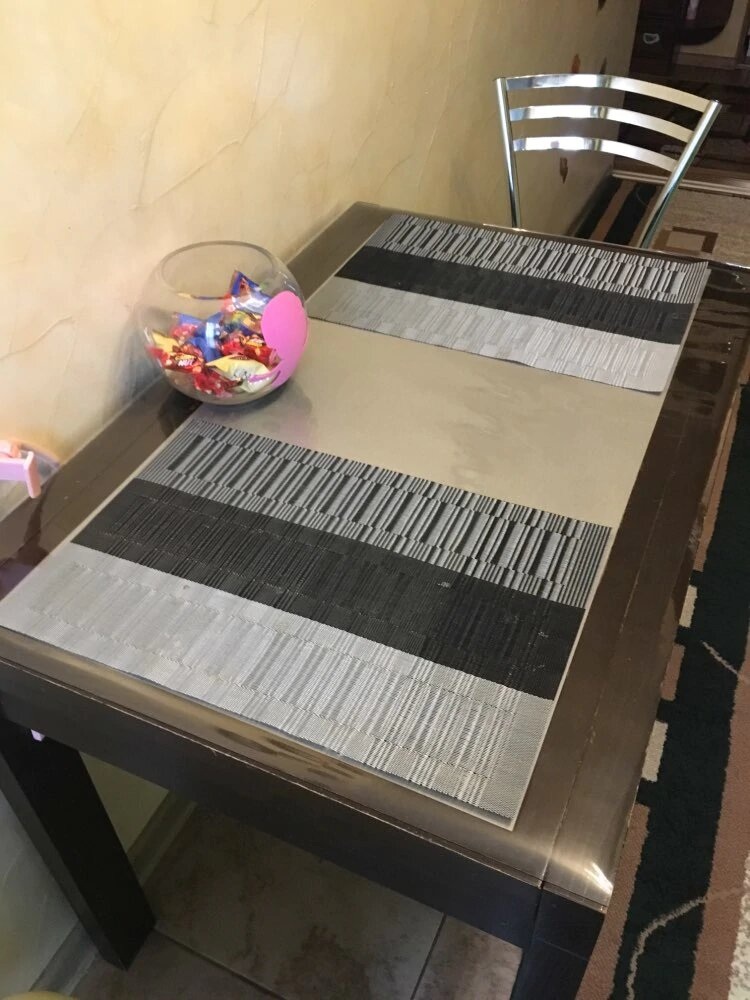 Противоскользящее свойство. Независимо от того, что поверхность скатерти смотрится гладкой, она отличается антискользящим покрытием, поэтому любой предмет, поставленный на нее, будет плотно прилегать к столешнице и не соскользнет.